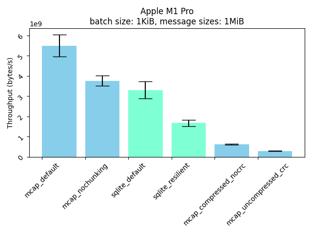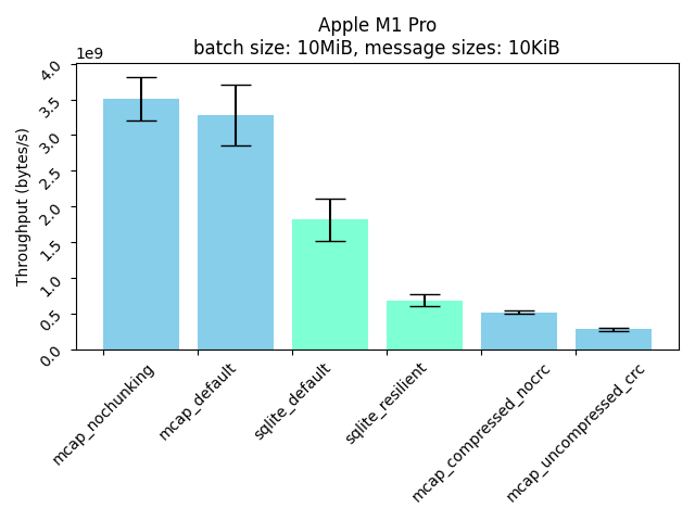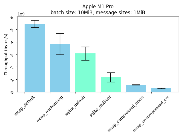 • MCAP either performs on-par with or significantly better than the SQLite storage plugin in their default configurations. It's also worth noting that in their default configurations, MCAP can offer better corruption resilience than the SQLite storage plugin as well.